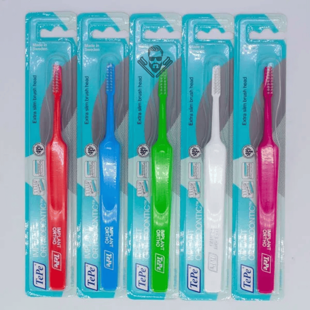 El cepillo de dientes Implant Othodontic de TePe está diseñado para la limpieza en caso de tratamientos de ortodoncia e implantes gracias a su cabezal estrecho de tan solo 2 hileras de filamentos suaves y redondeados que facilitan el acceso a zonas entre aparatos de ortodoncia y encía, o bien en los espacios entre muela de implante y encía indispensable para la higiene dental.