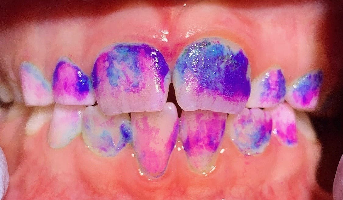 Las tabletas reveladoras revelan la placa en la boca, mostrando claramente dónde se necesita un cepillado adicional.