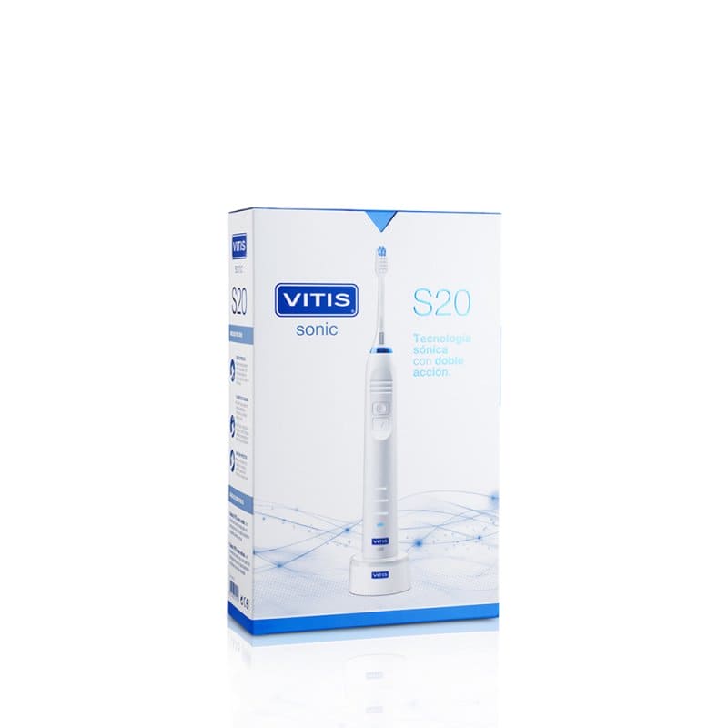 VITIS® sonic S20 es un cepillo eléctrico recargable que presenta 3 modos de cepillado en donde los filamentos pueden llegar a 40.000 movimientos por minuto: normal (para una máxima eliminación de la placa bacteriana), precision (para una mayor precisión y máxima eficacia en una zona más concreta) y massage (masajea las encías permitiendo una mayor limpieza del margen gingival). Su diseño, de la mano de profesionales de la odontología, es funcional y moderno, con un mango ergonómico con estrías antideslizantes para un cómodo agarre. Además la base de carga es pequeña y estable y consigue una carga duradera de la batería. VITIS® sonic S20 ofrece una limpieza basada en tecnología sónica de doble acción:
